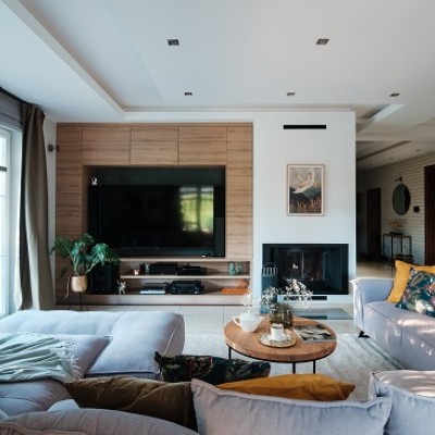 salon z kominkiem,